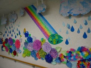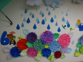 6月とゆうことで梅雨をテーマにした飾りつけが完成しました!
