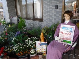 玄関の前では、スタッフ募集のチラシを持って座っていますが・・・