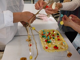 チーム分けをし各班ともわきあいあいとした様子でまゆ玉作りされました