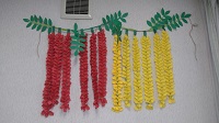 少し前に入居者様と一緒に作成していた藤の花をホールに飾っていただきました♬