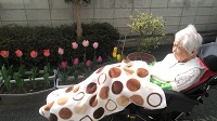 入居者様が施設の敷地内を散歩され、かわいいタンポポのお花とかいどう桜を