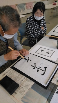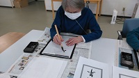 写真は真剣に筆にむかっている様子です!