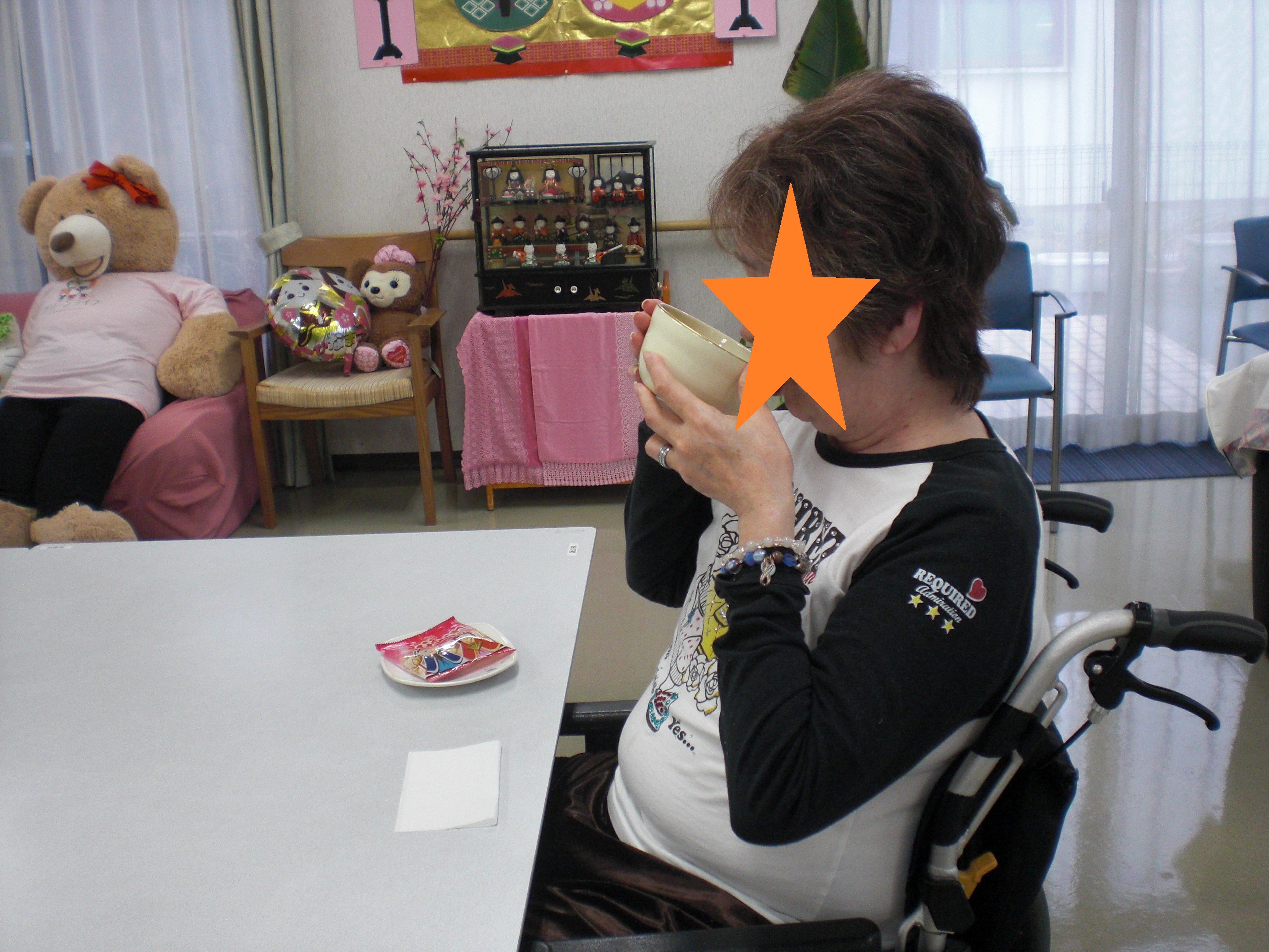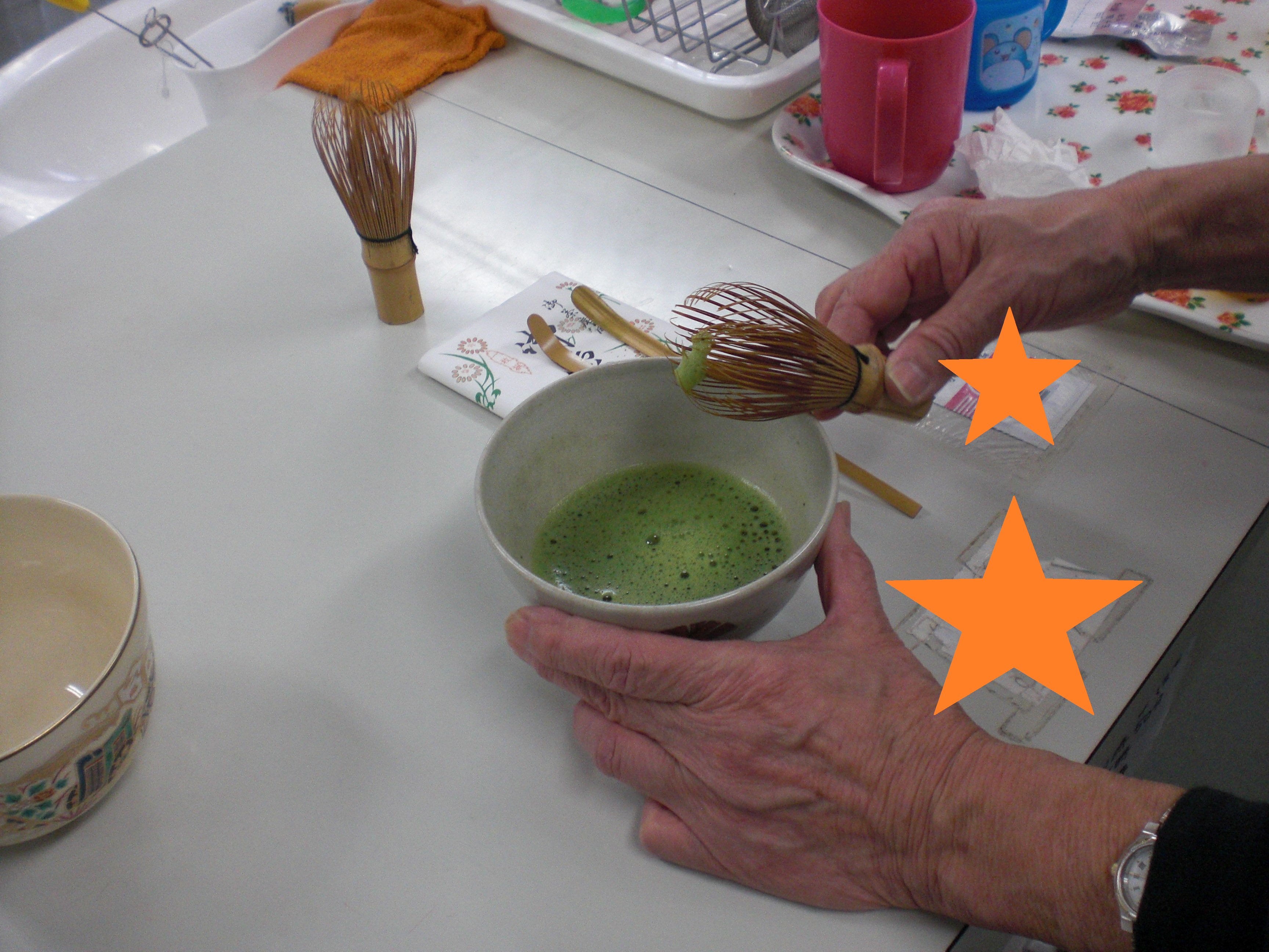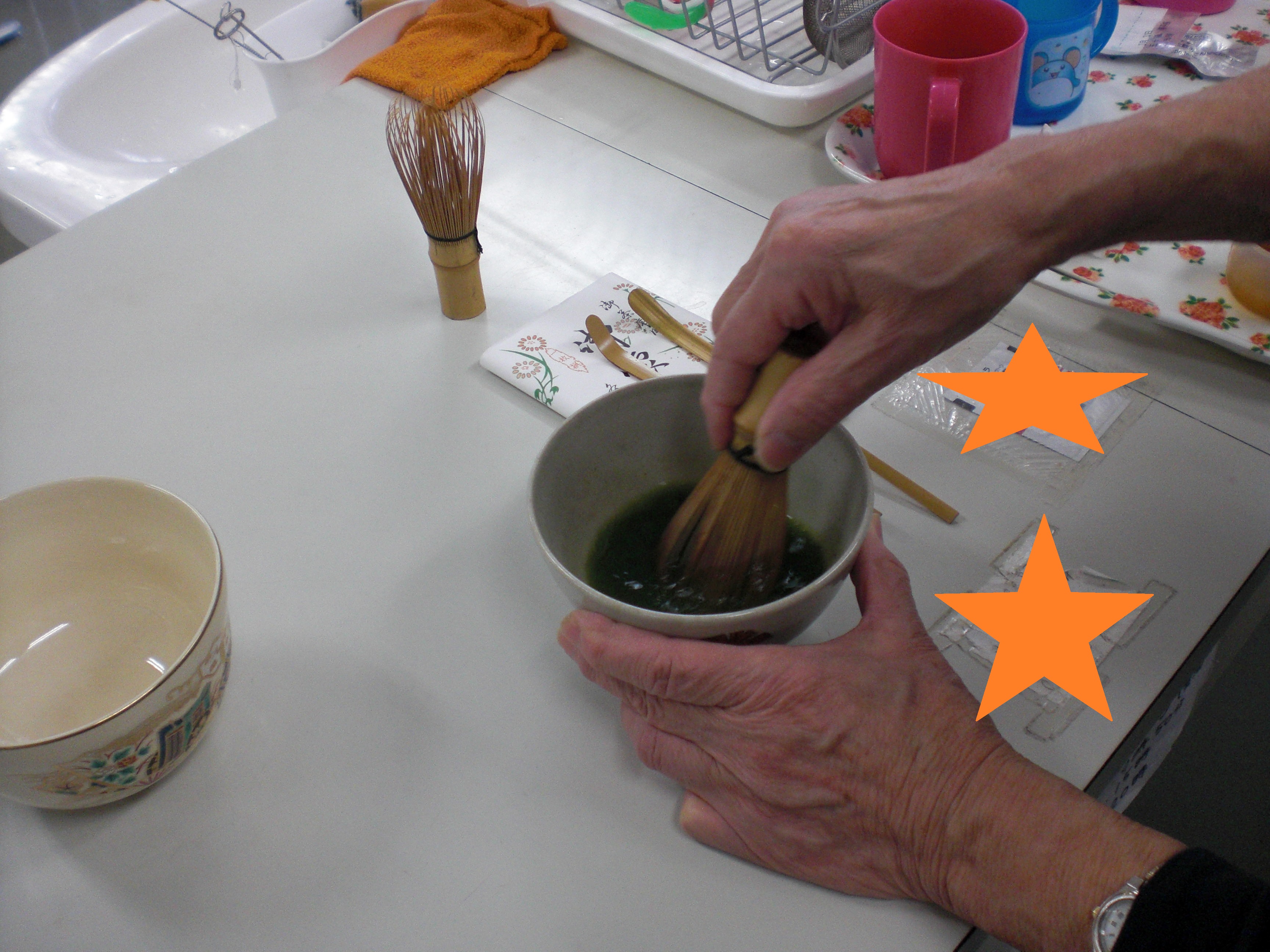 昨日は、お茶をたてて入居者様が飲んでいる所などが