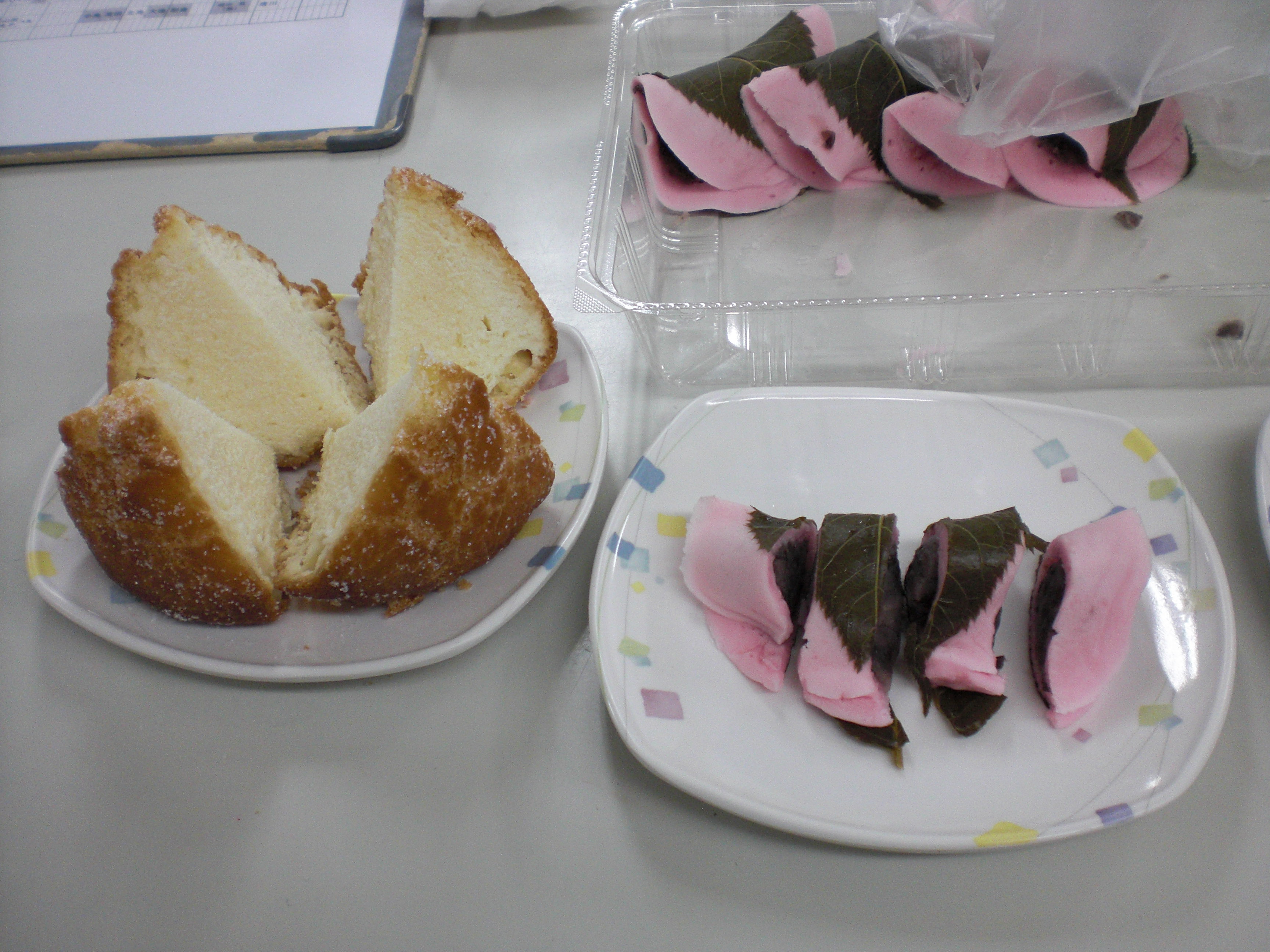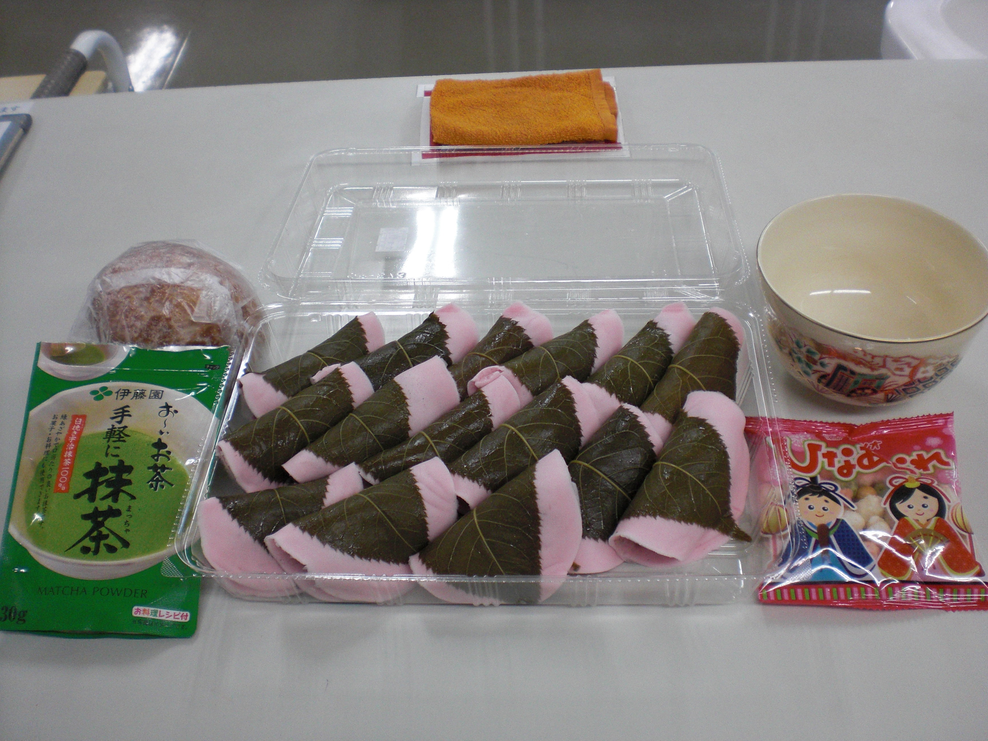 桜餅と抹茶を準備しました。
