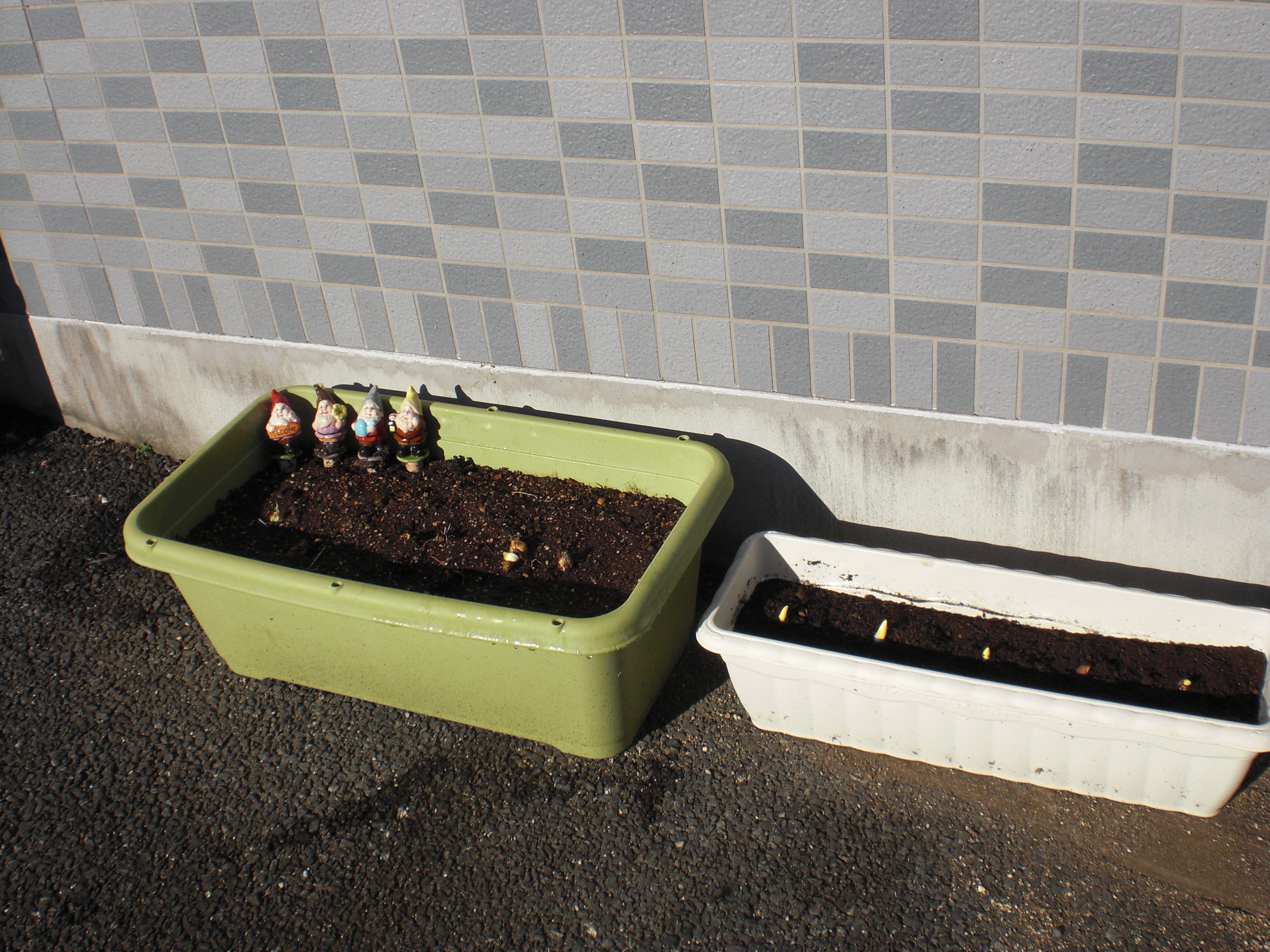 そこに球根をまっすぐに植えたんだ。チューリップをね。