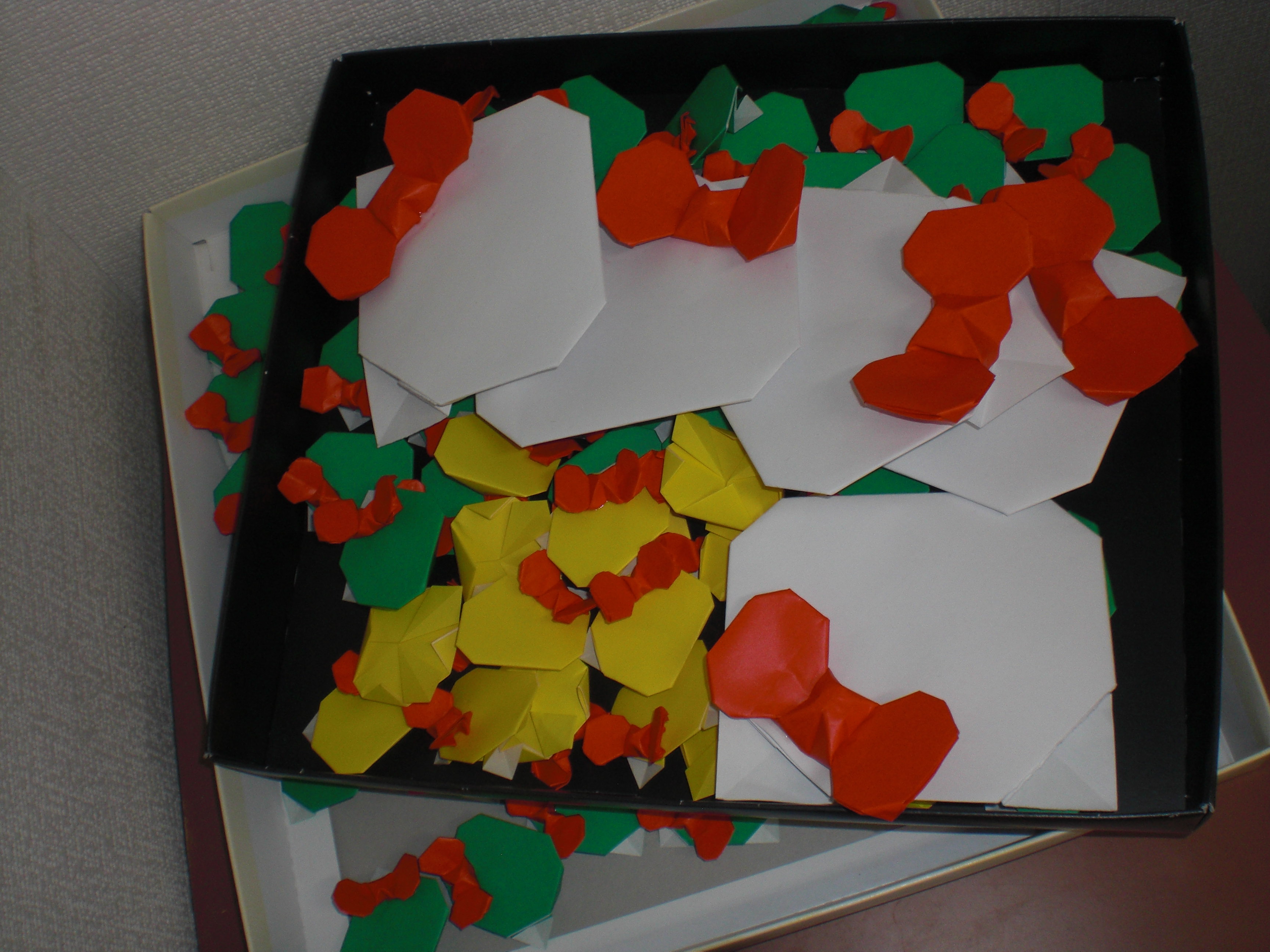 折り紙や模造紙、段ボールとありとあらゆるものを使用し作製して