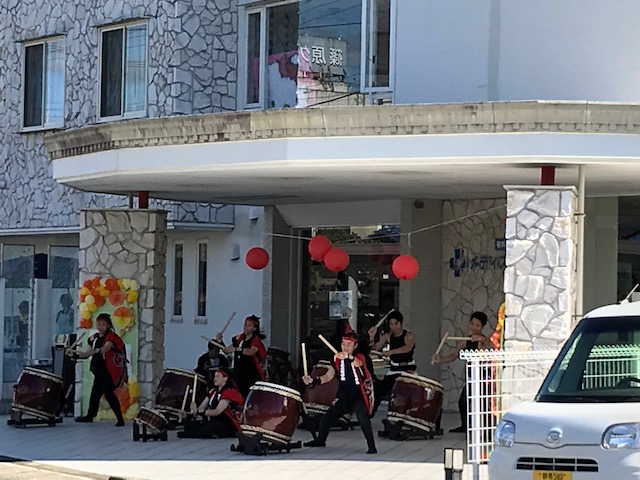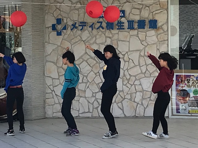 Ⅲ番館の前をステージにして、桐生西高校の太鼓演奏、ダンス、ジャグリング