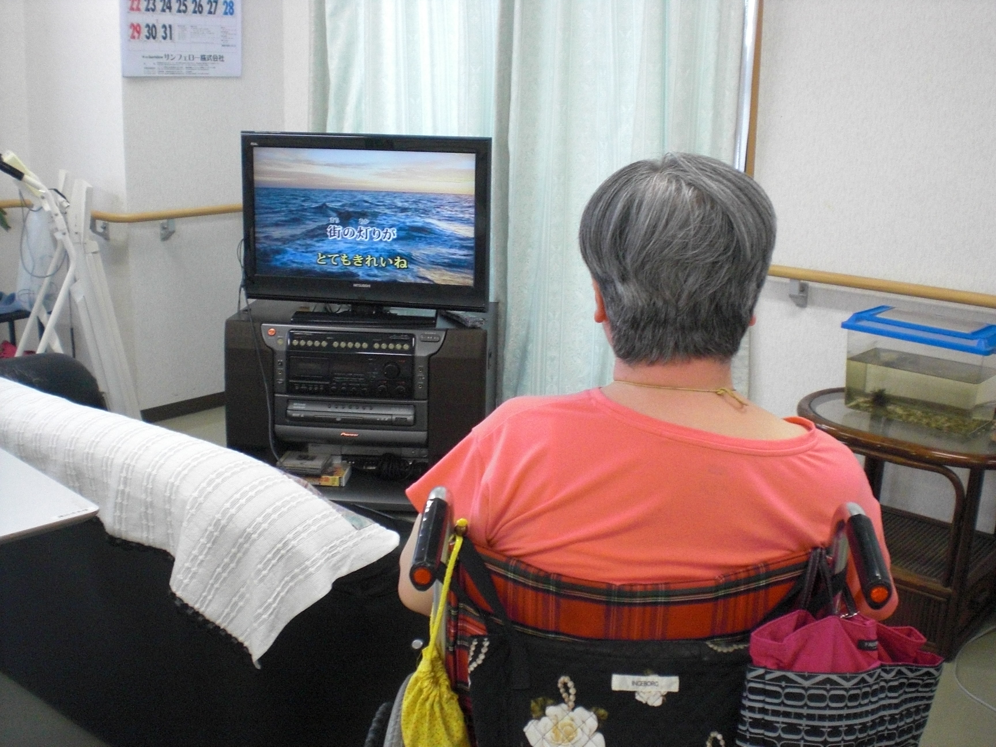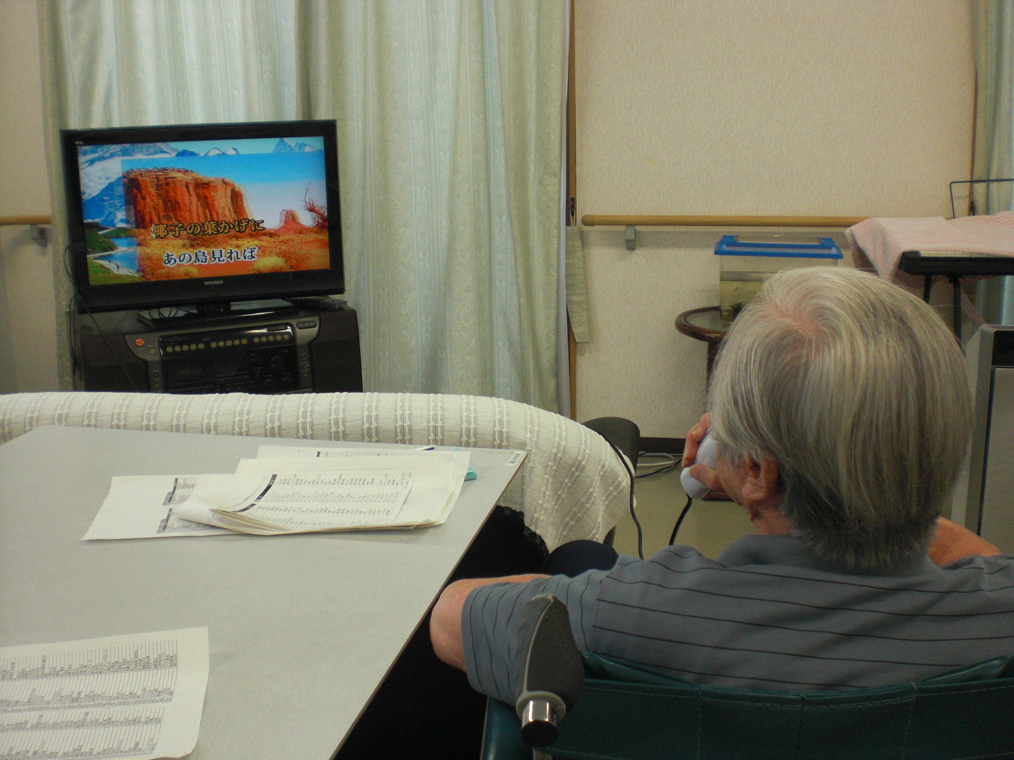 明日に、カラオケ大会があるとのことで、おやつの時間を使い、カラオケの練習を