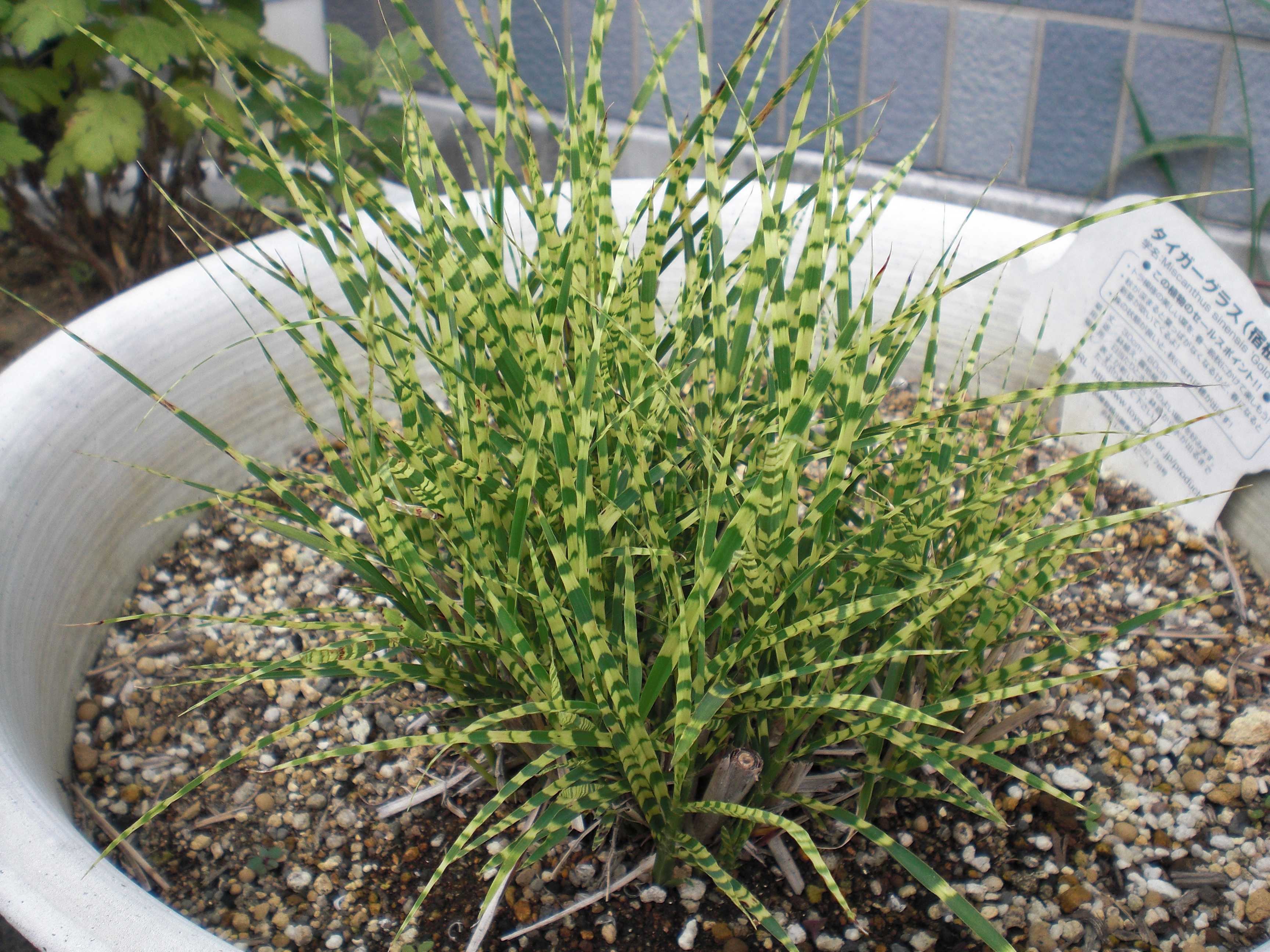 タイガーグラス(宿根草)と書いた名札が土に刺さっていました。