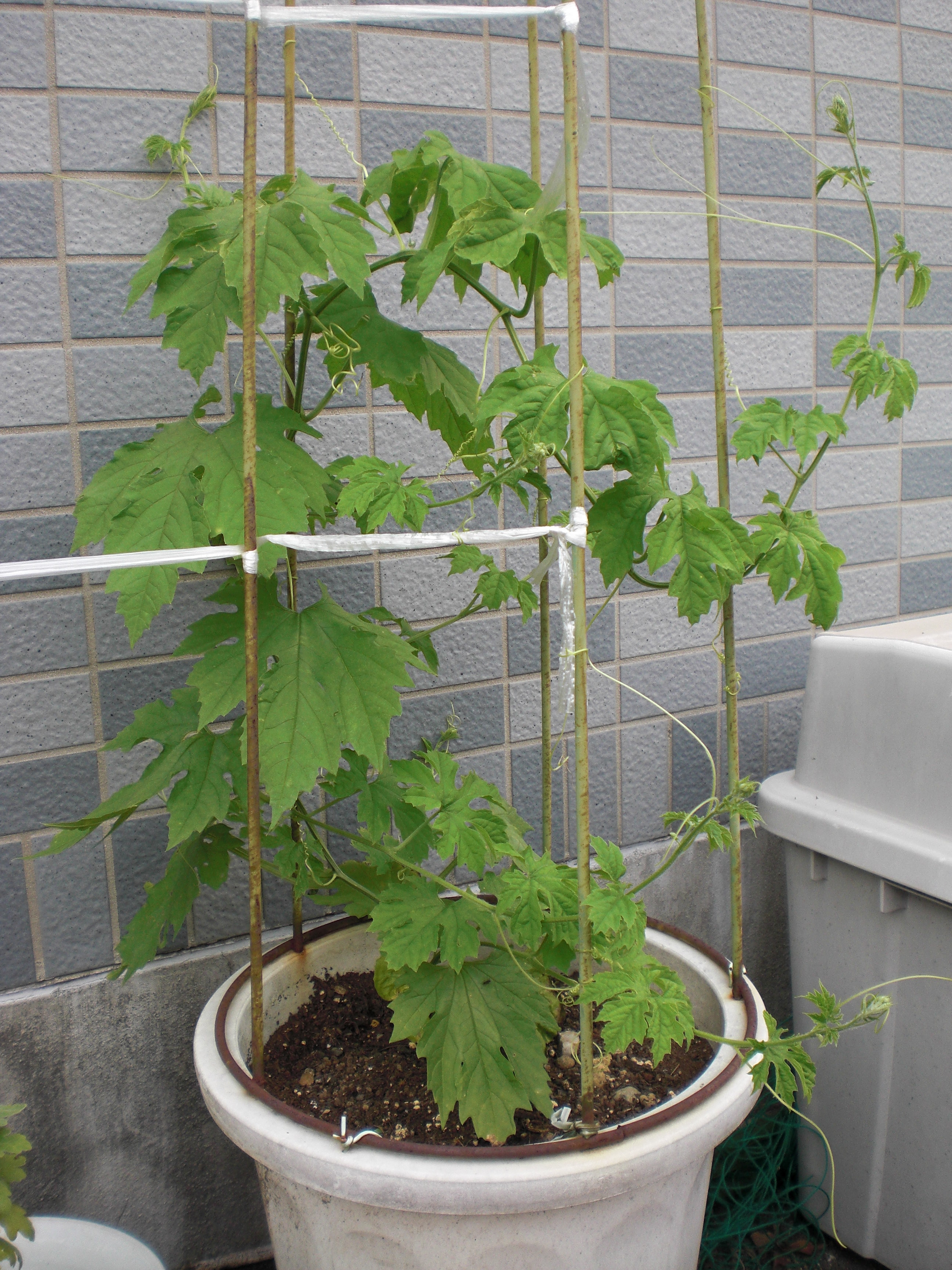 頂いてきた時は、とても小さい苗でしたが、今では、つるを伸ばし、大きく育ってきました。
