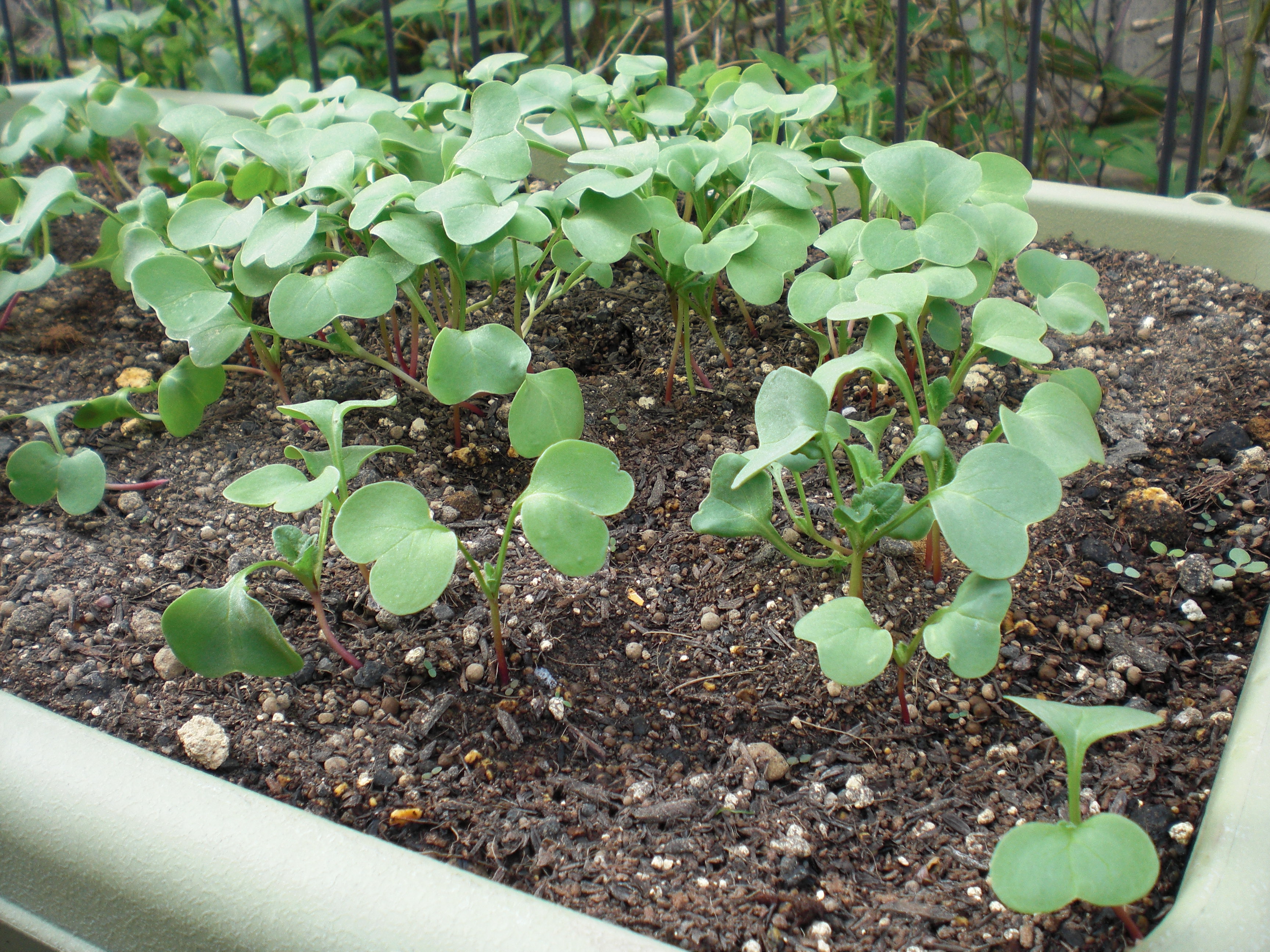 何日か見ないうちに、もう小さな葉っぱがプランターいっぱいに広がっていました。