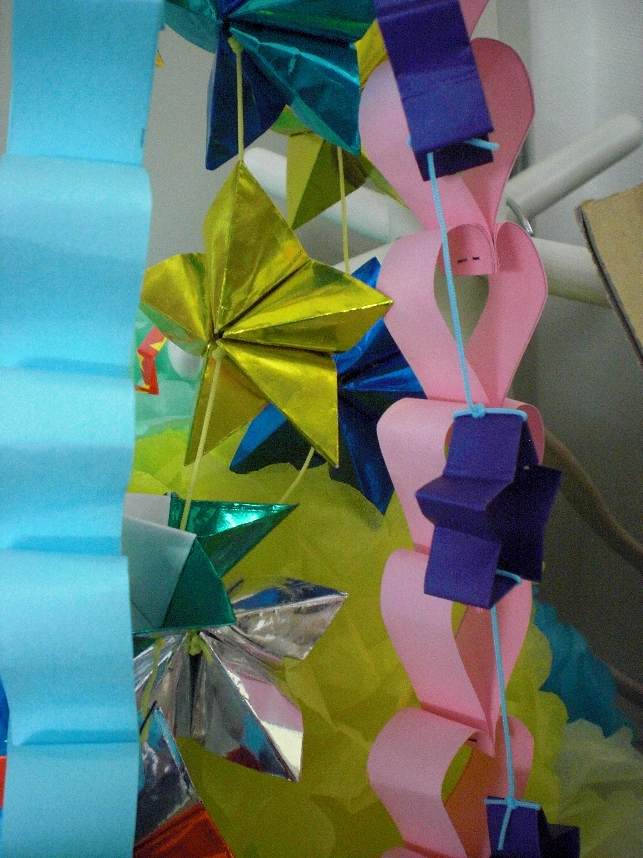 飾ってみてどのように、飾るかを皆で検討している所の途中の作品を紹介します。