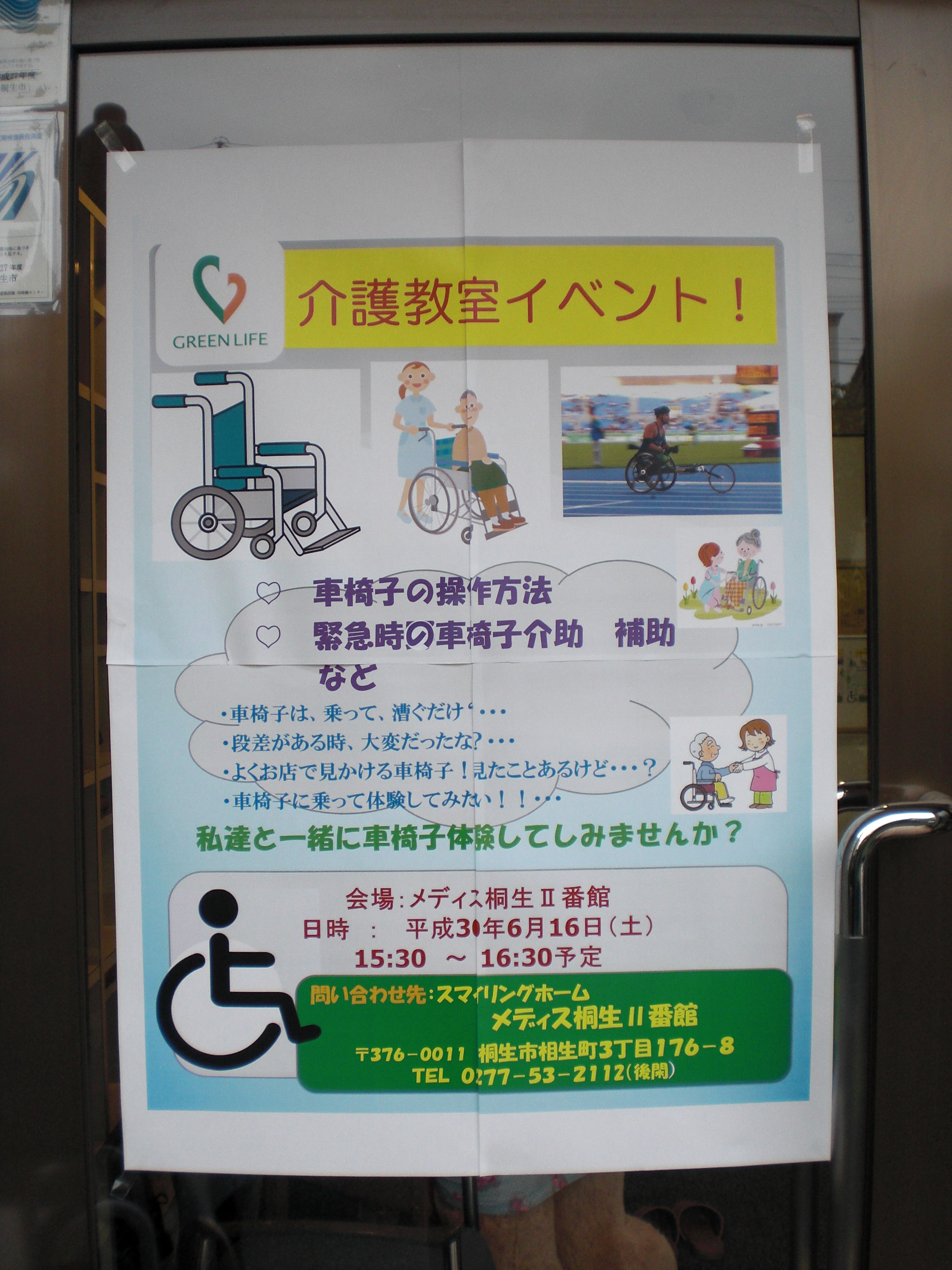 イベント情報を報告します。メディス桐生Ⅱ番館にて、介護教室のイベントを開催します。