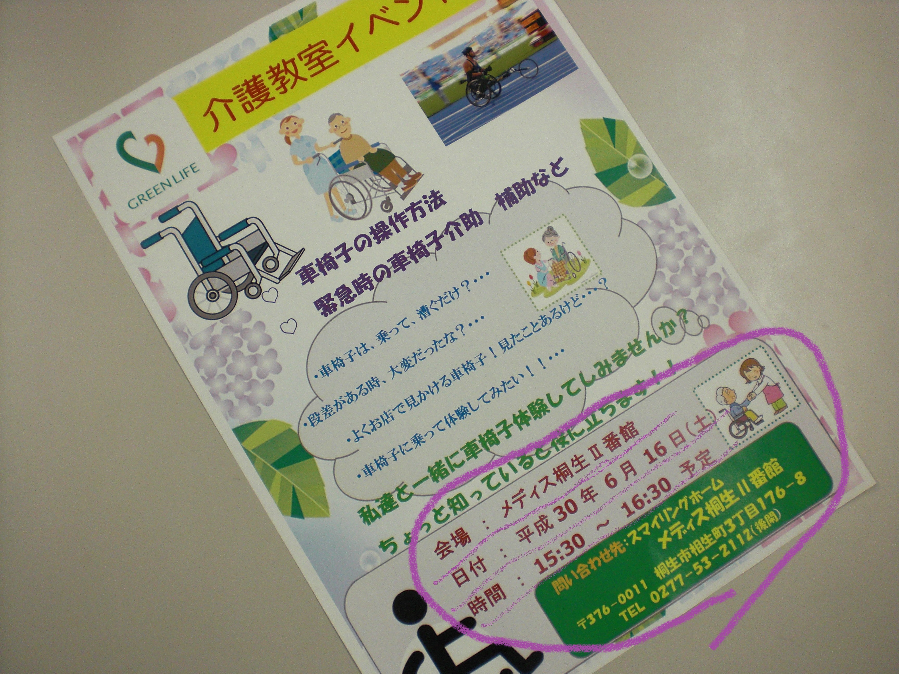 明日、メディス桐生Ⅱ番館にて介護イベント情報です。