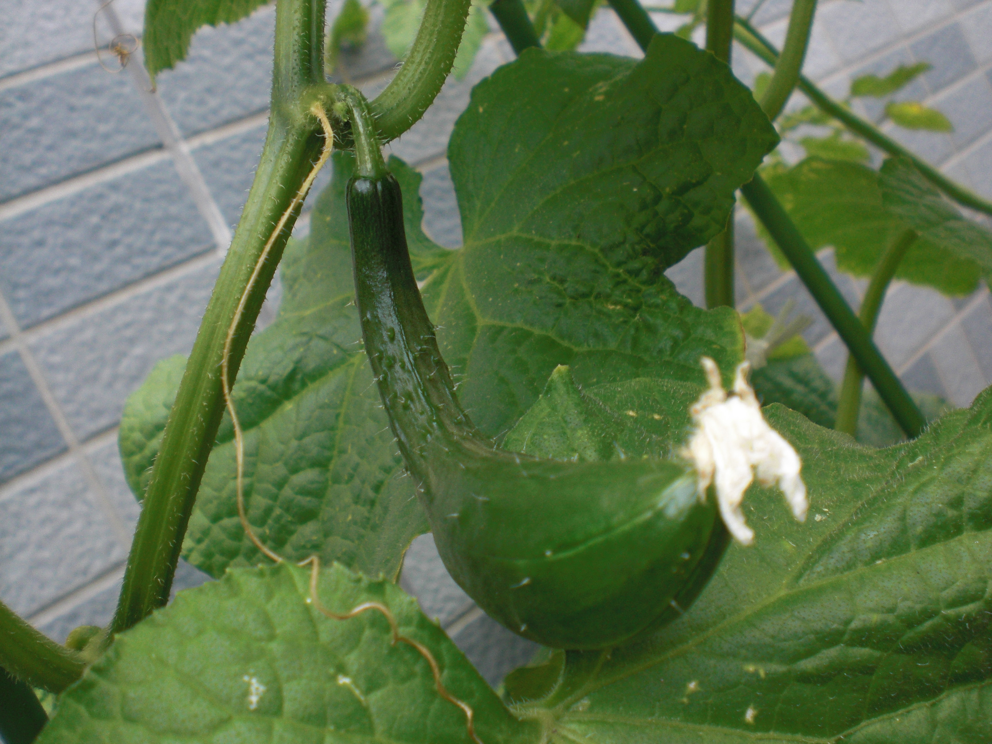 ちなみにとなりのキュウリが小さいながらも立派に大きくなろうとしていたので