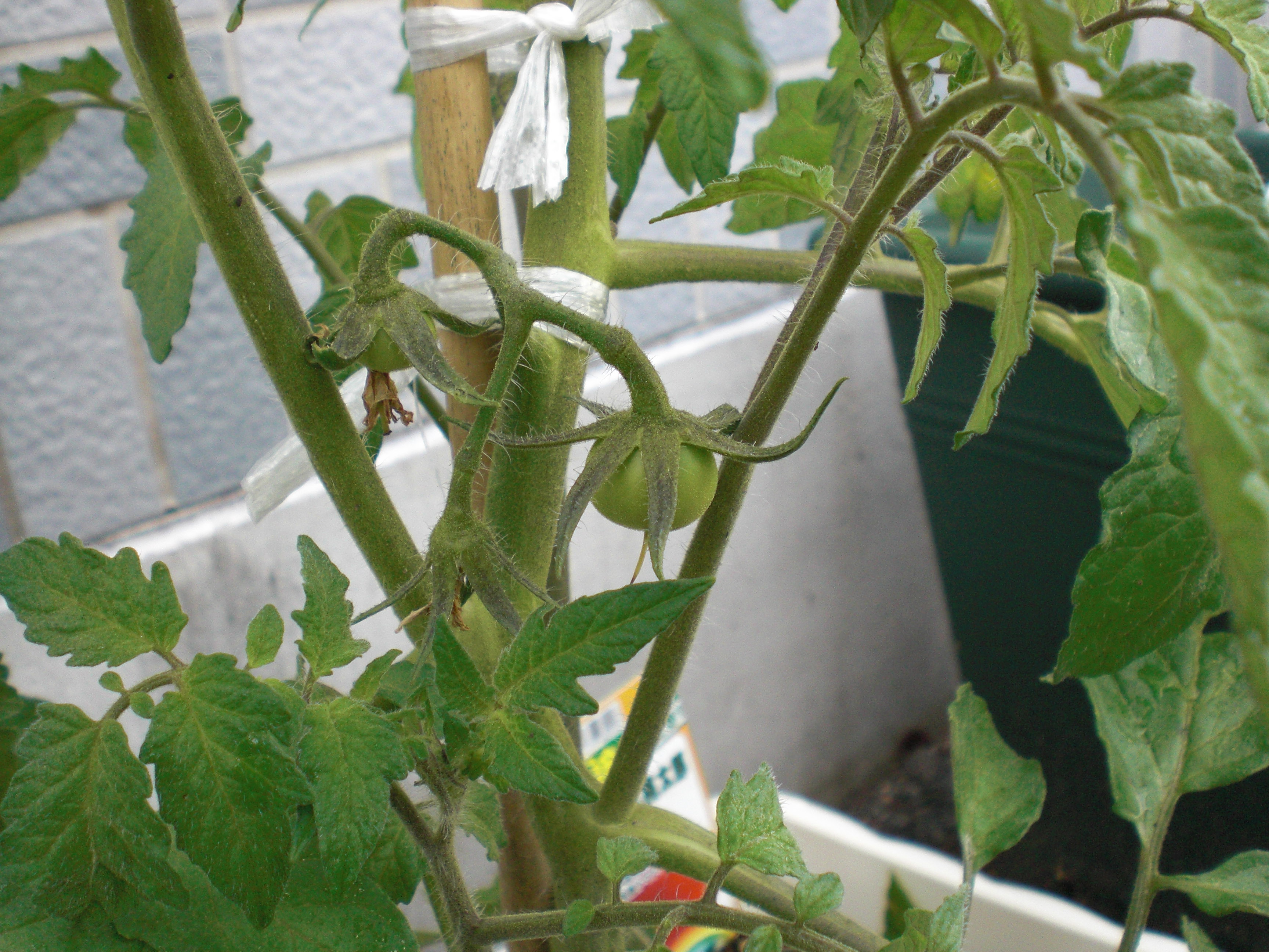 小さい緑色トマトですが、これからの成長が楽しみです。