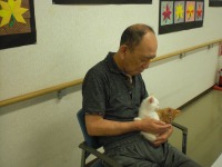 遊びに来ました。 子猫は入居者様に抱っこされ