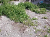 建物裏の駐車場の草が伸び 朝一番で草むしりをしました。