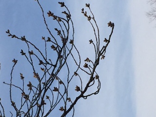 施設近くの運動公園の桜は だいぶピンクに色づいて