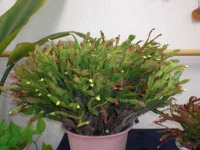 玄関前の花壇で太陽の光をあびて育てたシャコバサボテンが