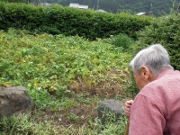 行く道中、ジャガイモ畑があり、「ここのはまだ早いなあ。