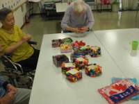 入居者様と一緒に7月の七夕飾りを製作しています。
