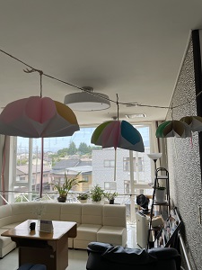 観光地にあるような自分たちの上空いっぱいに傘を飾りたいので、来年はもっと数を作ってみようと思います。