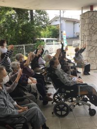 そのような所を利用して入居者様の状態に合わせて看護職員付添のもと歩行練習やスクワット等のリハビリ運動を行っています。
