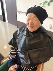 パーマ中の入居者さまもいい笑顔!