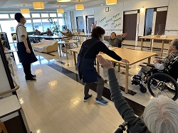 無理なくしっかり、腕を曲げ伸ばしする入居者様°˖