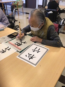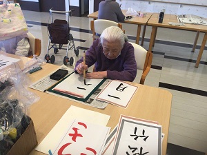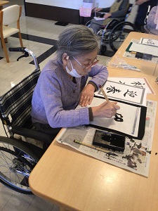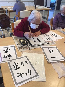 「久しぶりで筆をもつのが嫌だよ」と言われていた方々もいざとなると真剣な筆さばきを披露して下さいました。