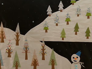 季節に合わせた壁の作品も冬の物へと変わっておりました。