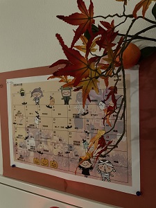 朝晩と寒く感じる様になりましたが、ホール内が寒くならない様にしておりますが、雰囲気から利用者様も冬を感じていただければと思います。