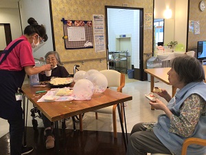 考えた末に、蒸しパンにキティちゃんを書いてお祝いしよう!はよかったのですが、、最初たくさん入居者様もみていたのですが、思った以上に時間がかかってしまい、最終的には2名様が。お祝いということで食べてハッピー しかもおいしいよってさらにハッピー?お夕飯たべられるか心配です。とにもかくにもきてぃちゃん誕生日おめでとうございます。うちのスタッフも本日誕生日なのでした~♪ そしてキティちゃんに似てないとかいわないでくださいね💦自信作なんですから(笑)