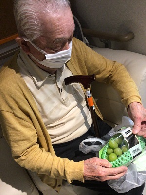3年ぶりにご家族と面会。入居者様は本当にうれしそう・・!外で5分程度でしたが、近況を交換していました。電話でもお話しているとのことですが、直接会うのは違いますよね。この後、おみやげのぶどうを楽しみにお部屋に戻られる足取り軽く。。なのでした。※面会に関しては事前にご連絡をお願いしております。