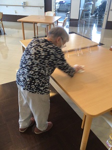スタッフも消毒のため、行っておりますが、「何かすること無い?」といつも笑顔で話かけてきてくれる利用者様。