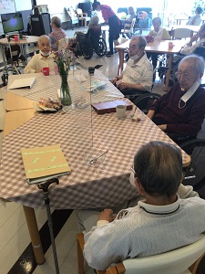 今日の午後のレクはカラオケと歌を歌いながらの体操を行いました。