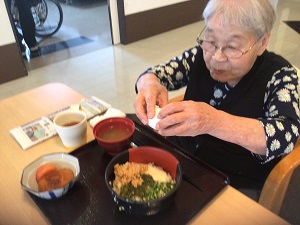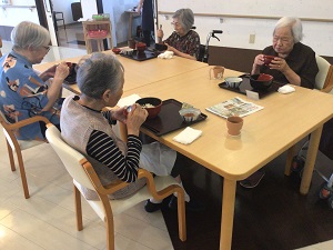 ひさしぶりお食事お楽しみ会になります( *´艸`) 昨日と打って変わって雨模様で気温は落ち着いていますが逆に気温差に疲れてしまいますね。そんなわけで、、、今日のお昼はねばねば丼!納豆~とろろ~めかぶ~おくら 温泉卵 なんかいいですよね これで夏バテを防ぎましょうというコンセプトでお送りいたしました。温泉卵は自分で割っていらっしゃる方も。さすがです(*’▽’)