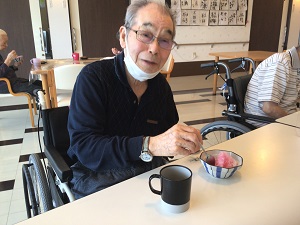 昨日と今日の二日間はおやつとは別にかき氷をご提供致しました。