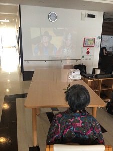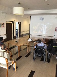 少しスピーカーの音を大きくし、映画を見ているとその場が映画館のように感じるほど迫力があり、皆様釘づけでした。