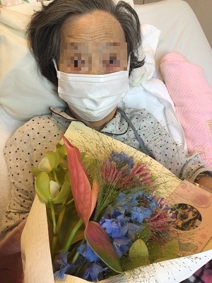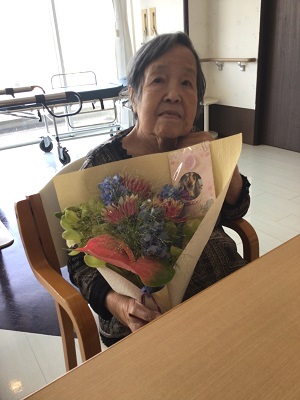 入居者様のご家族が契約し入居者様にお花を届けてくれているお花屋さんから、素敵なプレゼントをいただきました。とある女性から高齢者施設の方に花をということでアレンジしてくださいました。なんかおしゃれで、入居者様の反応はどうかな?と思いましたが、花の力は偉大でした。素敵ね~ と笑顔。ありがとうございます( *´艸`)