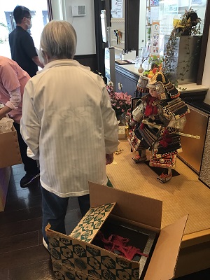 本日天気はいまいちより悪い感じです。散歩に行きたかったです。入居者様とスタッフで玄関の衣替えをいたしました(*’▽’)そう 兜の登場です 季節がすすんでいますね~