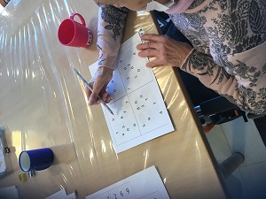 本日の脳トレは計算問題がメインでしたが、少し捻った計算問題を行いました。出した答えを足していくものでしたが、答えが問題になるという事に戸惑い普段より質問が多く感じました。