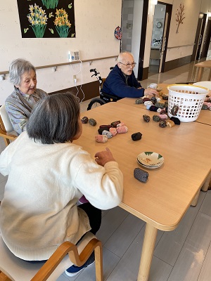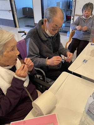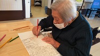 計算プリントの方は暗算で解かれている入居者様もいれば、算盤を使って解いている入居者様もいて