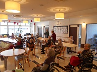 風邪も強くすぐに雪も解けてしまった為、室内でお身体を動かせる予防体操を行いました。