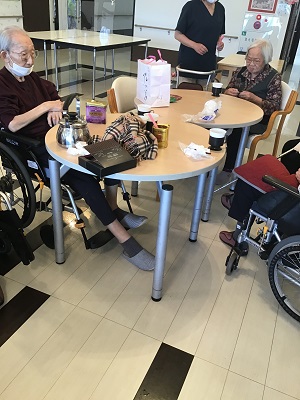 こんにちは、メディス桐生Ⅲ番館です。今日は急遽ティパーティを開催♪最近入居された入居者様がみなさんへふるまいたいとのこと。紅茶をいれてくださいました。今回、女性ばかりご招待させていただきました。いい香りが漂います。「苦いから砂糖ちょうだい」と数名(笑) またご本人様よりロ〇スのチョコレートまでふるまわれて ここはイギリスかしら?と勘違いしてしまいそうな雰囲気 ところで今朝地震がありましたが、私たちは強風かなと思い込んでおり地震とわかりませんでした・・ 各地被害がないこと願います