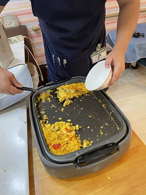 日頃の感謝を込めて・・スタッフさんにパエリヤを作りました。といっても作ったのもスタッフさんですが。。午前中からなんかいい匂い・・ホットプレートで作り上げたパエリヤはとってもおいしかったです(*’▽’) 調理担当 鎌田・神山 頂いたスタッフは23名 ごちそうさまでした お仕事がんばりましょ!