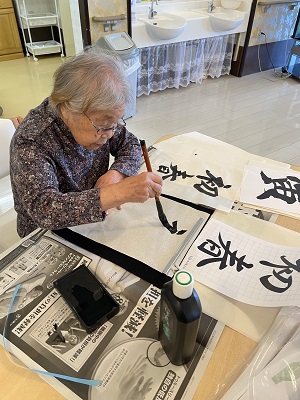 改めまして本日ホムペ担当の鈴木です。本年も引き続きよろしくお願いいたします!今日は書初め&かるたをしました。書初めお題は「初春」「大寒」「寅」姿勢よくきれいな所作で書かれているのを見ると真似したくなりました!書初めのあとは上毛かるた 読み手は女性入居者様。なれたものでした。正月2日目はこんな感じで過ごせました(*’▽’)