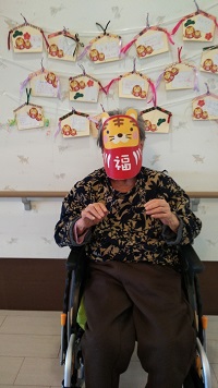 お正月との事で今年の干支『虎』のお面を付けて(誰だか分からなくなるためお面を外しても撮影)