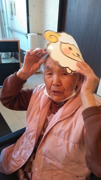 午後はのんびりと獅子舞作り。自分の干支のお面を被りながら♬
